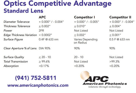Focus Lens. Dia 2.0" (50.8mm) FL 10" (254mm) ET .380 (9.65mm).